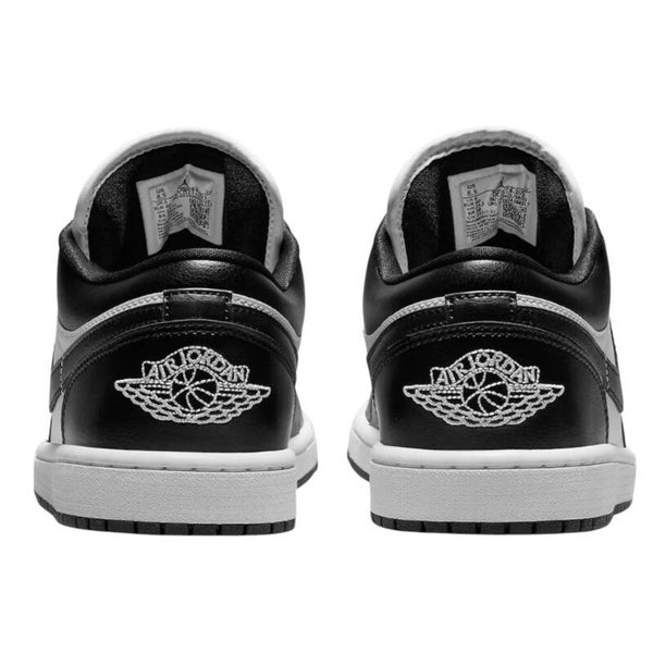 🇬🇧 This Air Jordan 1 Low makes no attempt to distinguish itself from the Dunk Low Panda. Just like the best-seller, it uses exclusively black and white: the lighter of the two covers the base, midsole, and tongue, while the opposite white colors the overlays, Swoosh, outsole, and laces.