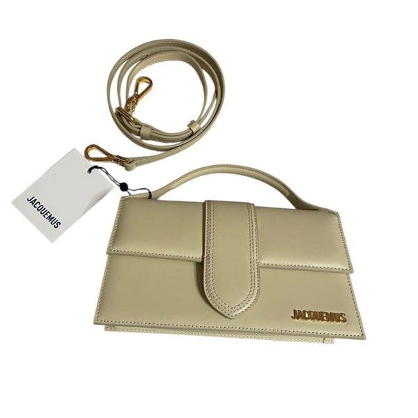 🇬🇧 Jacquemus Le Grand Bambino Beige Gold leather women's bag with removable shoulder strap. New with tags. Dimensions: 23 cm x 13 cm x 6 cm