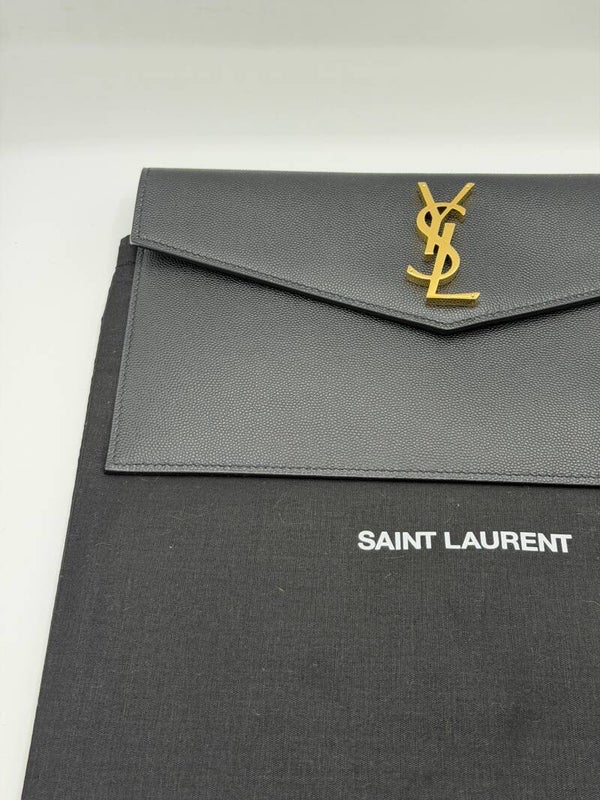 🇮🇹 Pochette in pelle nera Saint Laurent, con logo in metallo dorato. In pelle con chiusura magnetica. Nuova con etichette. Misure: 27 cm