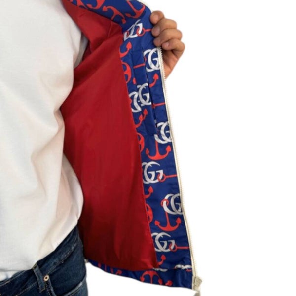 🇮🇹 Giacca da uomo Gucci GG Monogram, leggera in nylon, tessuto non elasticizzato. Ispirato ai motivi nautici ed allo stile streetwear.