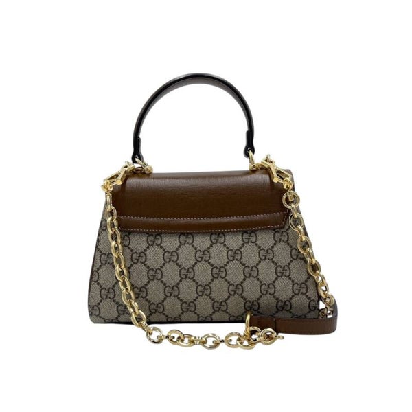 🇬🇧 Gucci Horsebit handbag in GG Supreme canvas with top handle and removable leather and steel chain shoulder strap. Part of the 2023 collection. New with tags and dust bag. Dimensions: 22 cm x 12 cm x 15 cm.