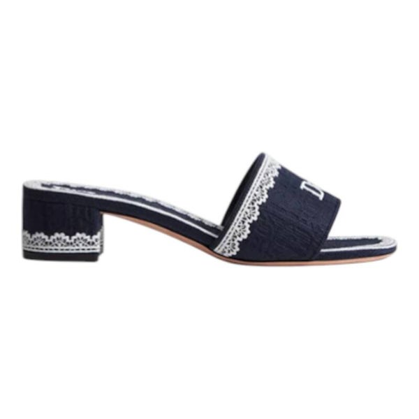 🇬🇧 This Dior Dentelle heeled sandal, designed by Jonathan Anderson for the Maison, reinterprets the canons of Dior elegance with a modern twist. Featuring a minimalist shape and a covered block heel, it is embellished with cotton details embroidered with a Dior Oblique motif and white lace, creating a refined and timeless shoe. Cotton fabric, leather lining. New with dustbag.