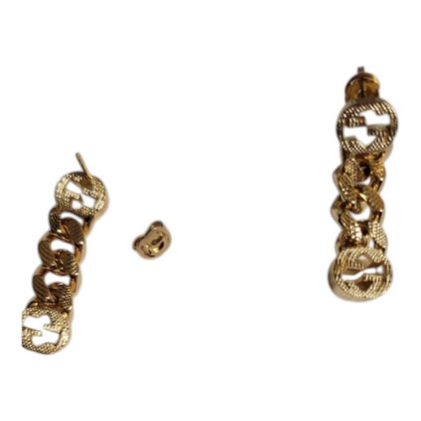 🇮🇹 Caratterizzati da un design a catena gourmette in metallo color oro giallo, presentano l'emblematico logo con la doppia G intrecciata ad entrambe le estremità. Il modello fa parte della collezione fashion jewelry della Maison ed è stato incluso in linee recenti come la collezione Gucci Aria del 2023. In ottime condizioni pari al nuovo, con box originale Gucci. Lunghezza: 5.5 cm.